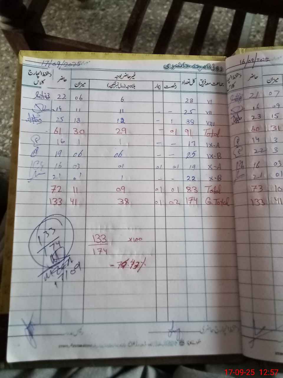 | No. of Students Present - Male | 0 | 0 | 0 | 0 | 0 | 0 | 0 | 0 | 22 | 14 | 25 | 35 | 37 | 133 | ||