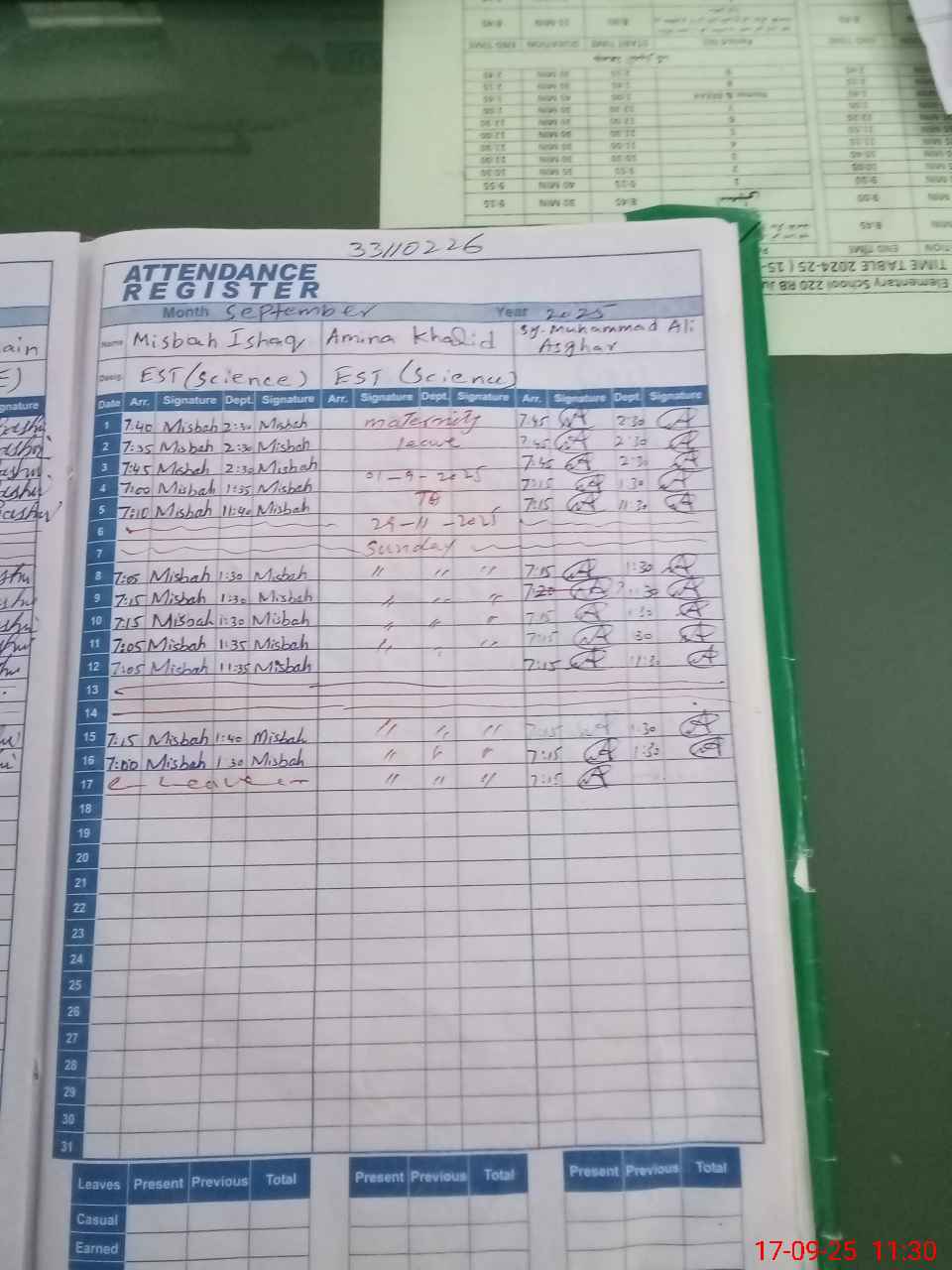 | 33**** | Am**** Kh**** | Regular | 1 | 0 | 0 | 0 | 0 | 0 | 0 | 0 | 1 | Maternity | |