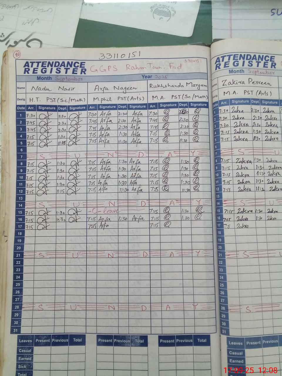 | CNIC | Full Name | Designation | R/C | Absence During Last Calender Month |