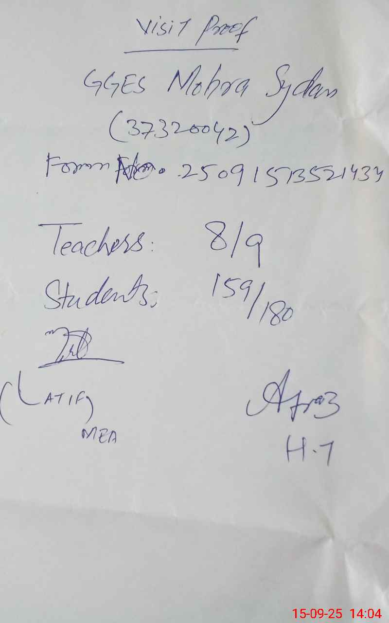 | EMIS Code: 37320042 | Name of School: GGES MOHRA SYEDAN | |||