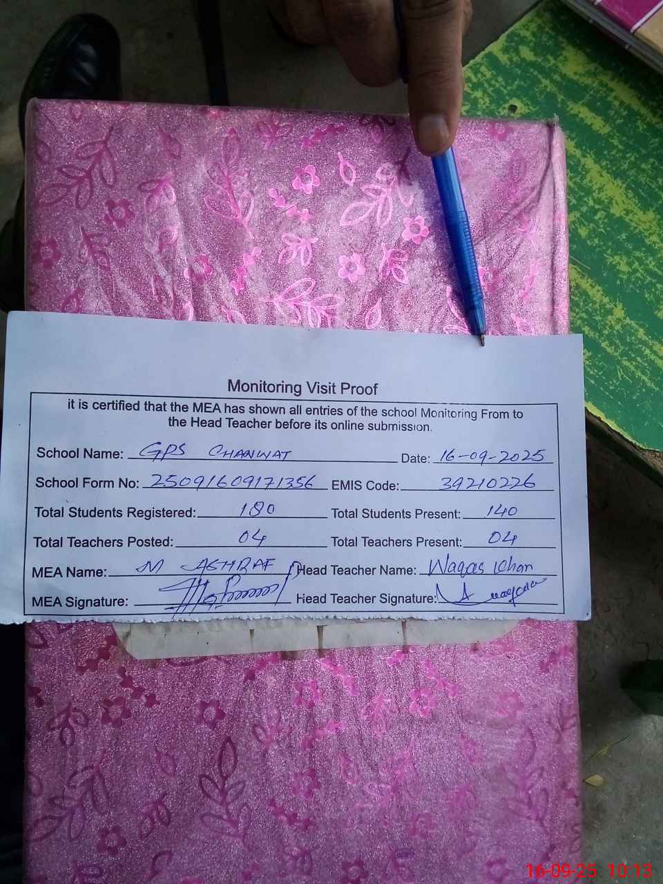 | EMIS Code: 39210226 | Name of School: GPS CHANWAT | |||