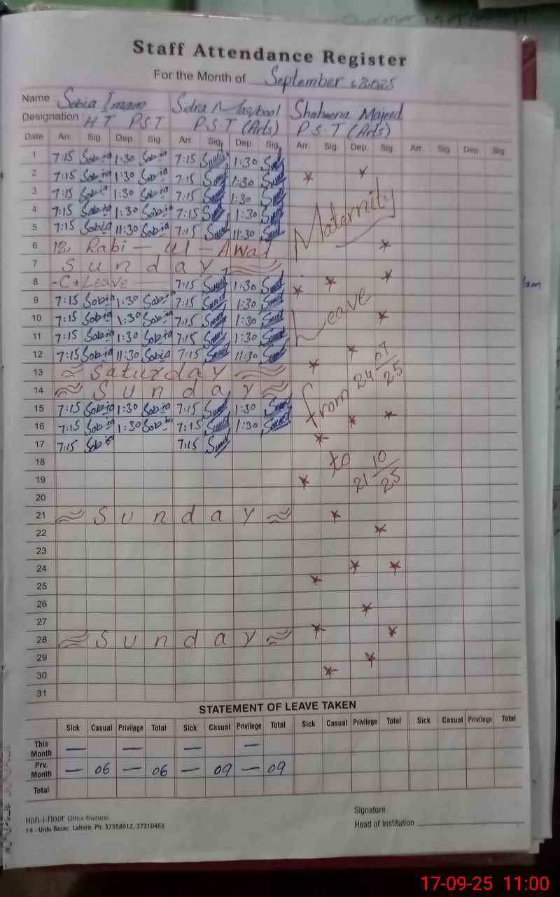 | 31**** | Sh**** Ma**** | PST | Regular | 0 | 0 | 0 | 0 | 0 | 0 | 0 | 0 | 0 | Maternity |