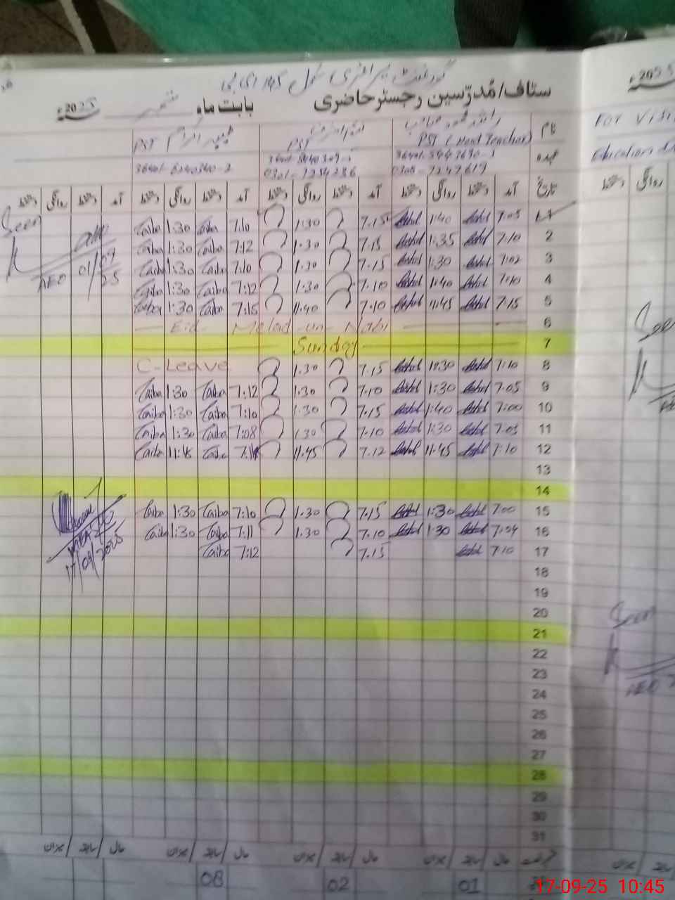 | Name: RA**** MA**** Designation: (School Headmaster's/Headmistress's) PST Phone/Cell Number: 03**** |
