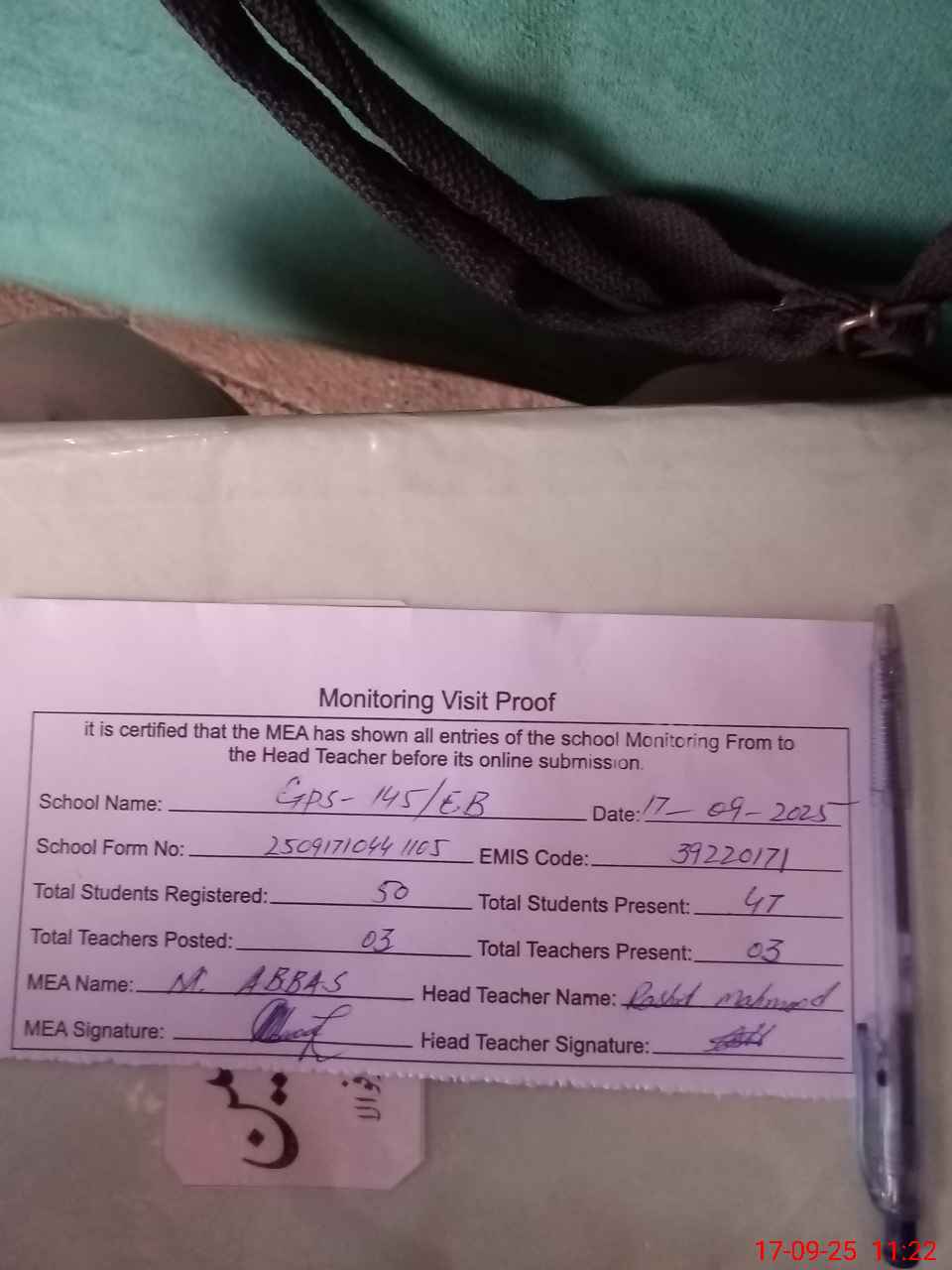 | EMIS Code: 39220171 | Name of School: GPS 145 EB | |||