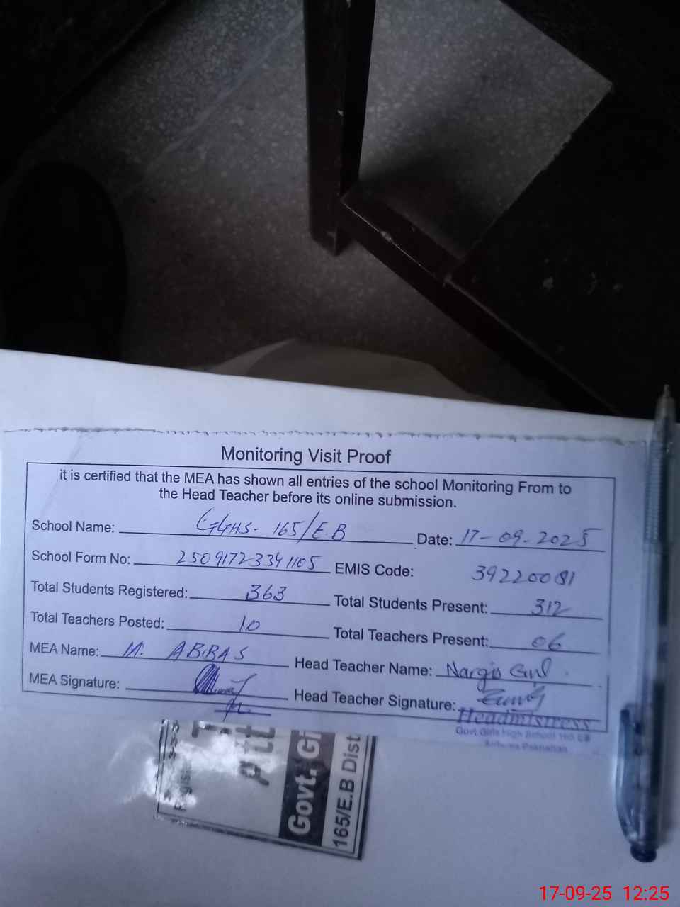 | EMIS Code: 39220081 | Name of School: GGHS 165 EB P/O 163 EB | |||