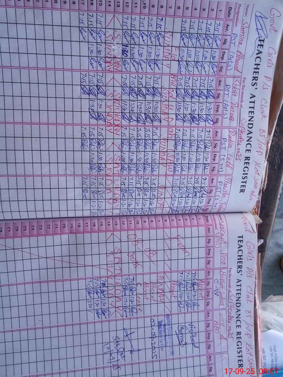 | Monitoring Date: 17-09-2025 | Start Time: 17-09-2025 08:10 AM | End Time: 17-09-2025 09:08 AM | Name of MEA: Za**** Ah**** | |