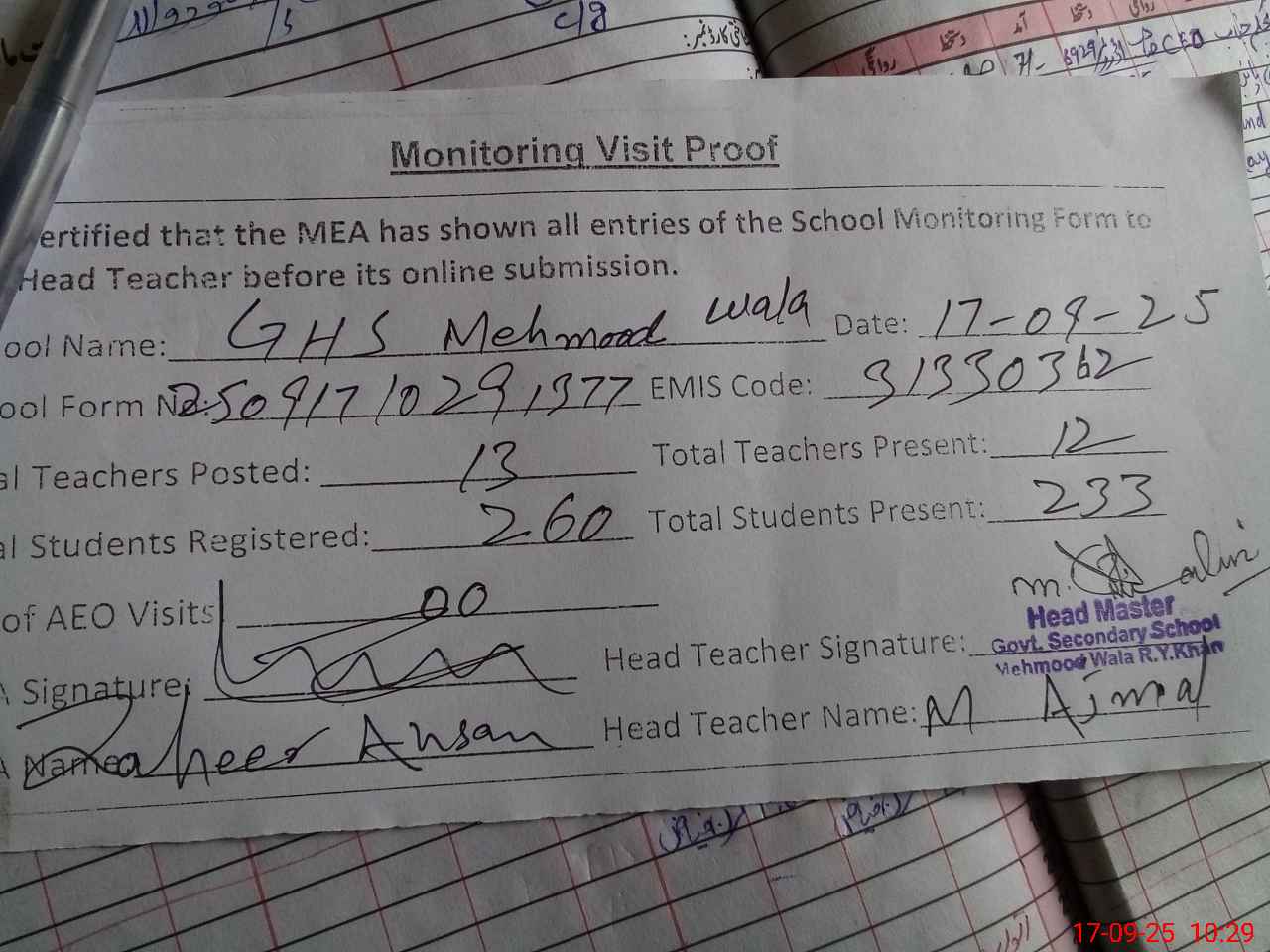 | EMIS Code: 31330362 | Name of School: GHS MEHMOOD WALA | |||