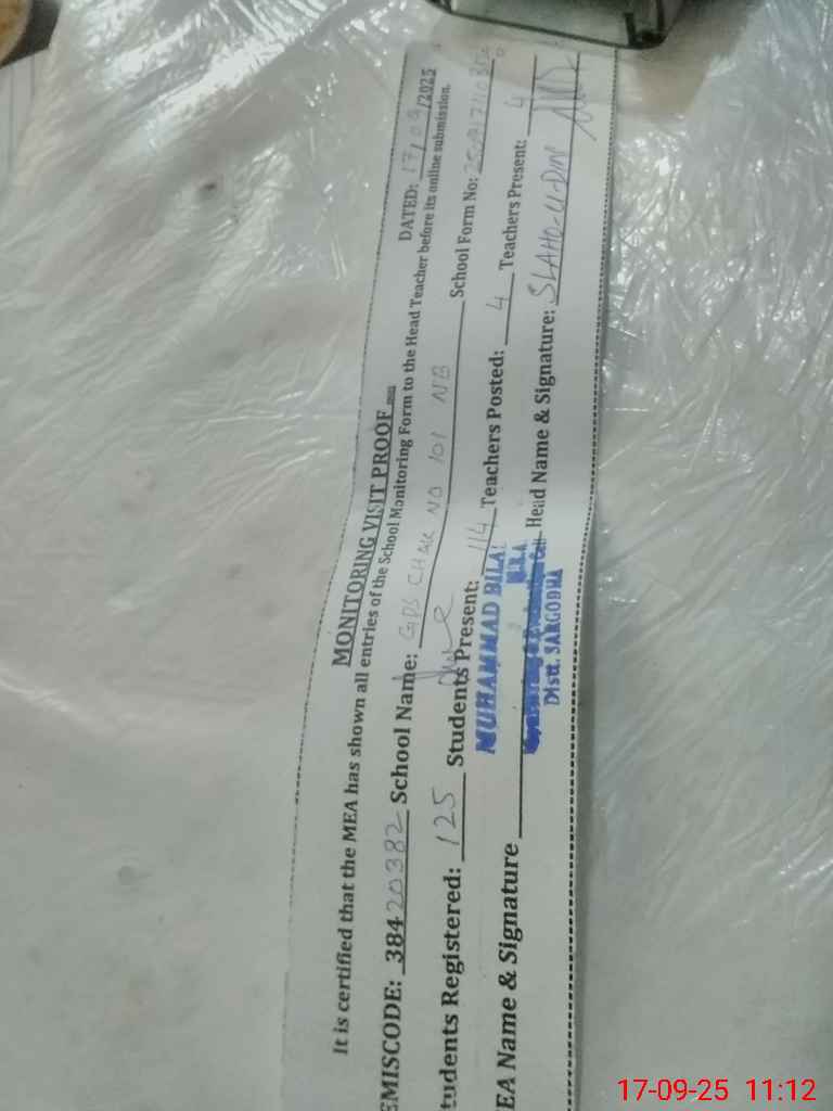| EMIS Code: 38420382 | Name of School: GPS CHAK NO.101 NB | |||