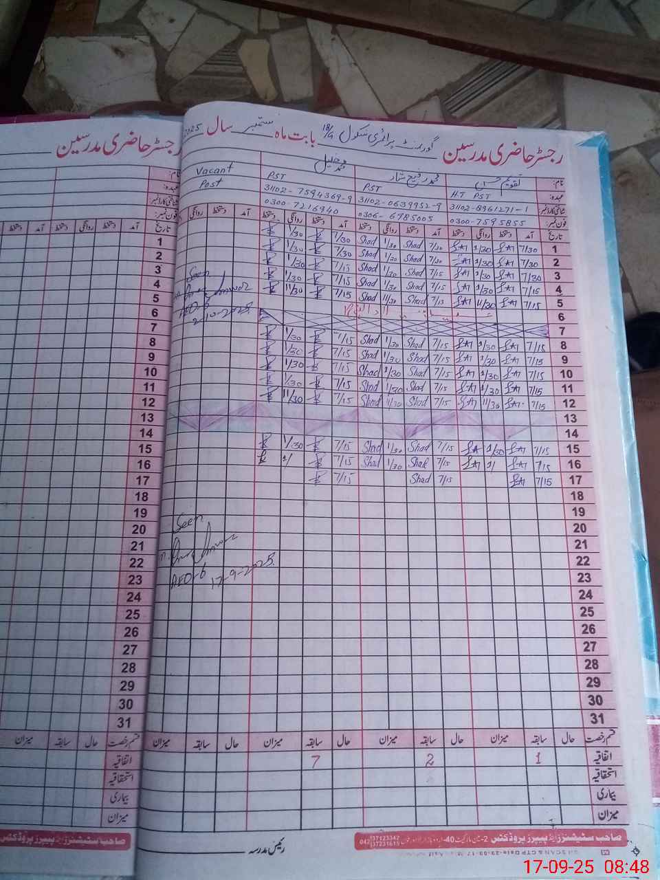 | Name: Ta**** Ha**** Designation: (School Headmaster's/Headmistress's) P S T Phone/Cell Number: 03**** |