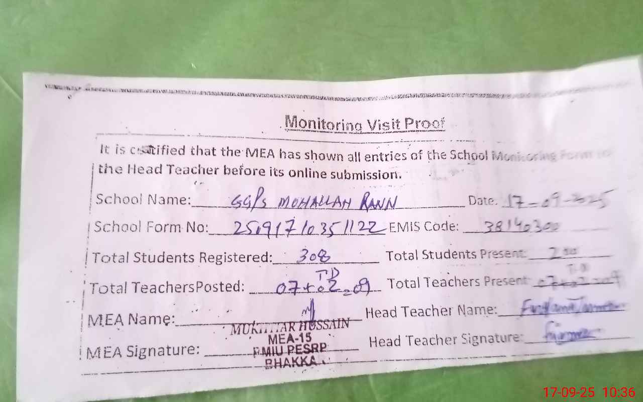 | EMIS Code: 38140300 | Name of School: GGPS MUHALLAH RAAN | |||