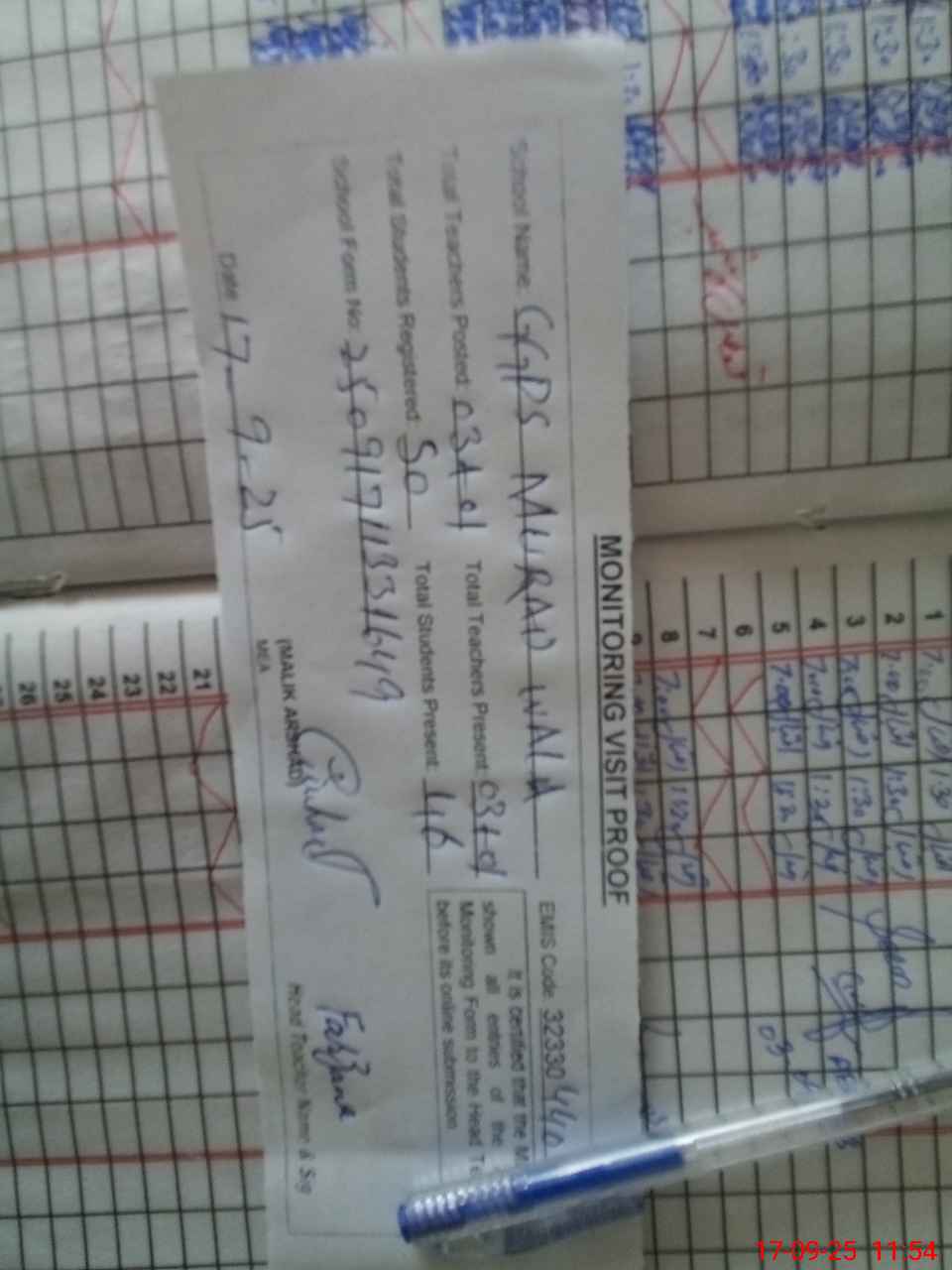 | EMIS Code: 32330440 | Name of School: GGPS MURAD WALA | |||