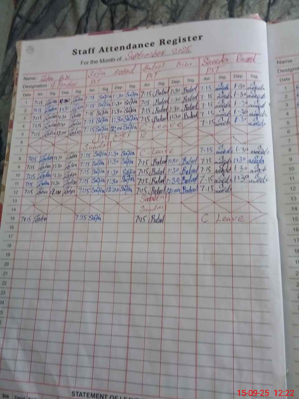 | 31**** | Sa**** Ra**** | PST | Regular | 2 | 0 | 0 | 0 | 0 | 0 | 0 | 0 | 2 | Casual |