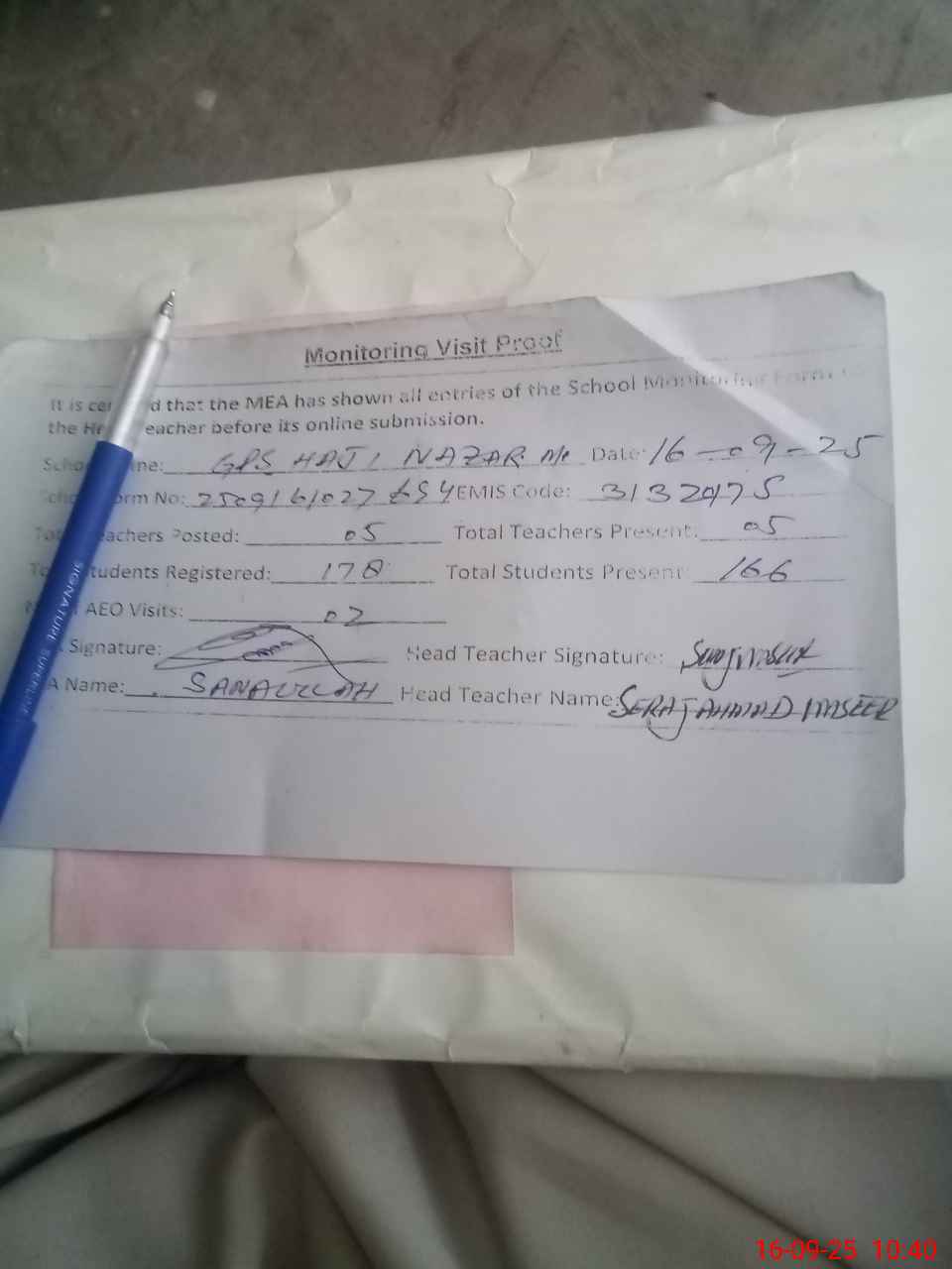 | EMIS Code: 31320175 | Name of School: GPS HAJI NAZAR MUHAMMAD | |||