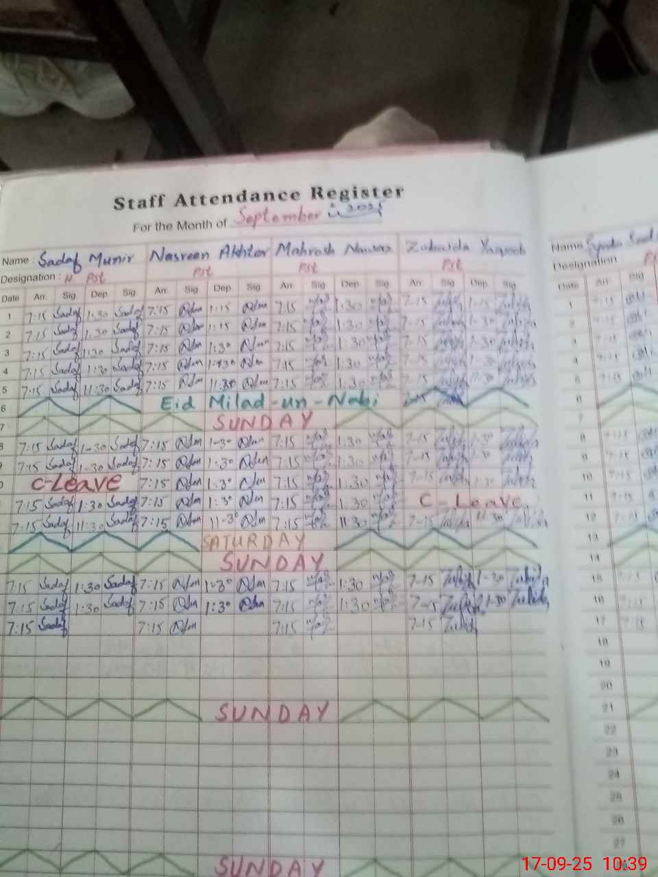 | CNIC | Full Name | Designation | R/C | Absence During Last Calender Month |