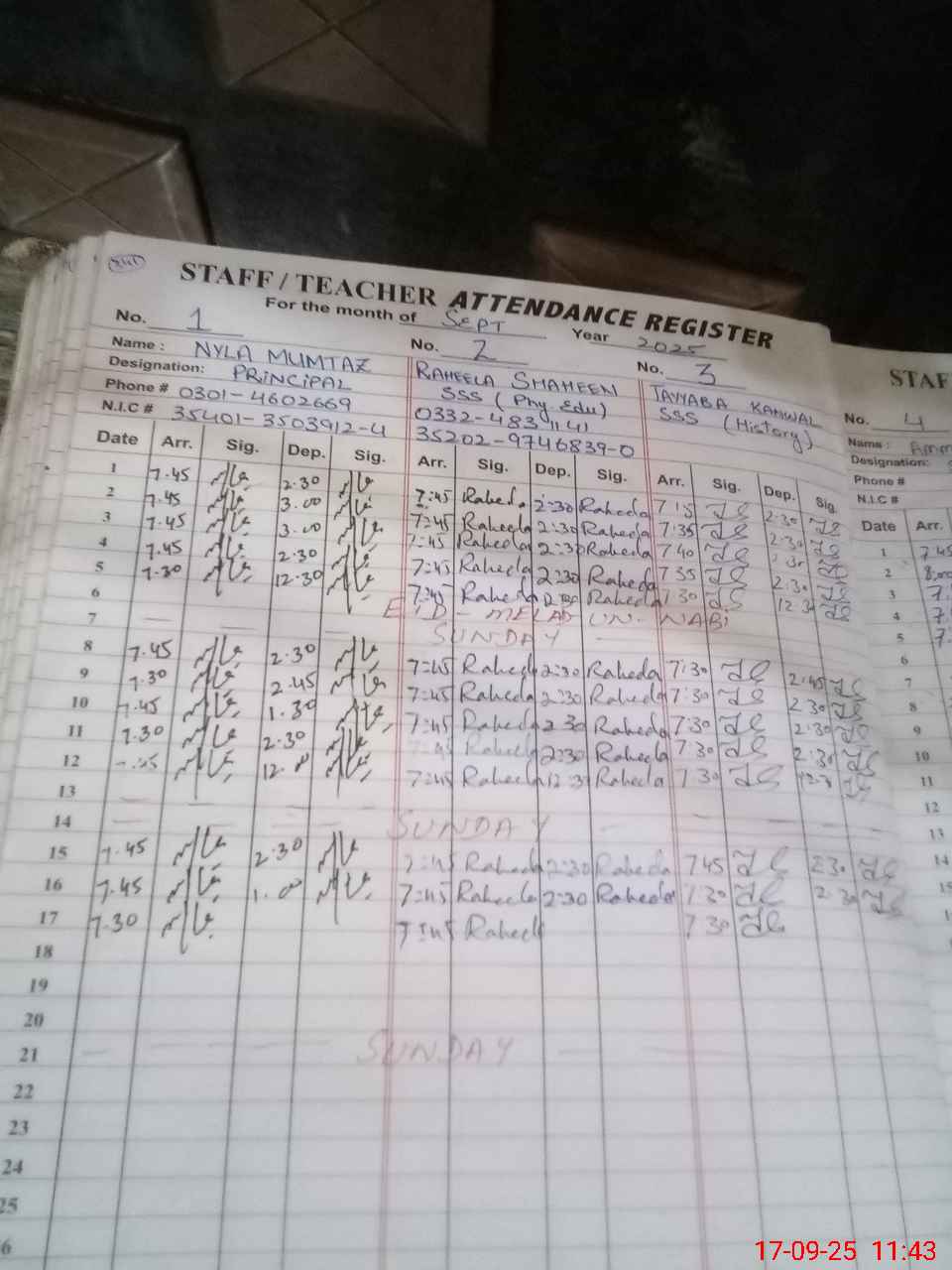 | Name: NA**** MU**** Designation: (School Headmaster's/Headmistress's) Principal Phone/Cell Number: 03**** |