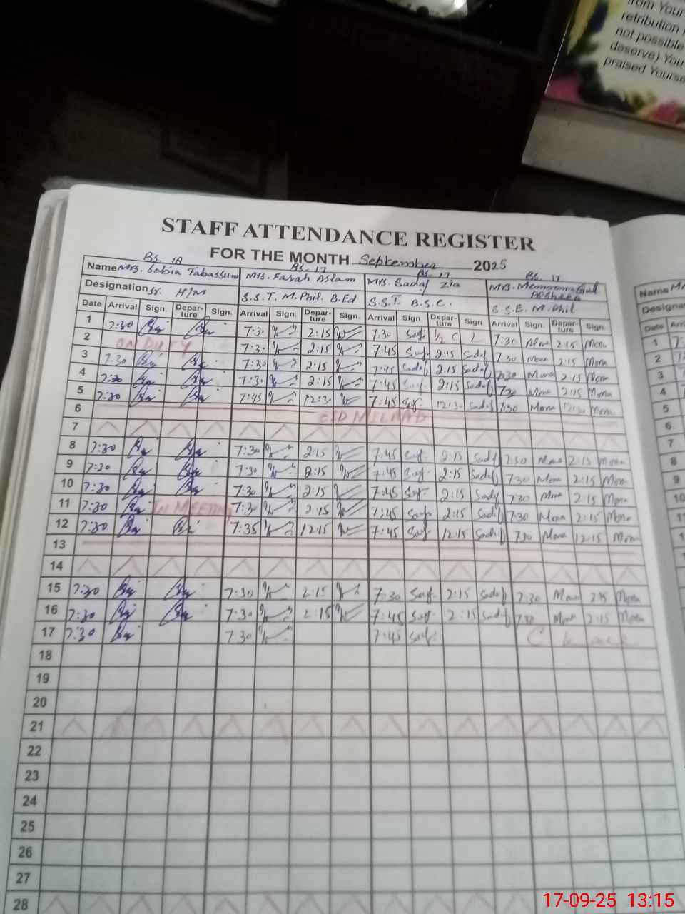 | Attendance Register | Head Teacher | MEA with School | Visit Proof |