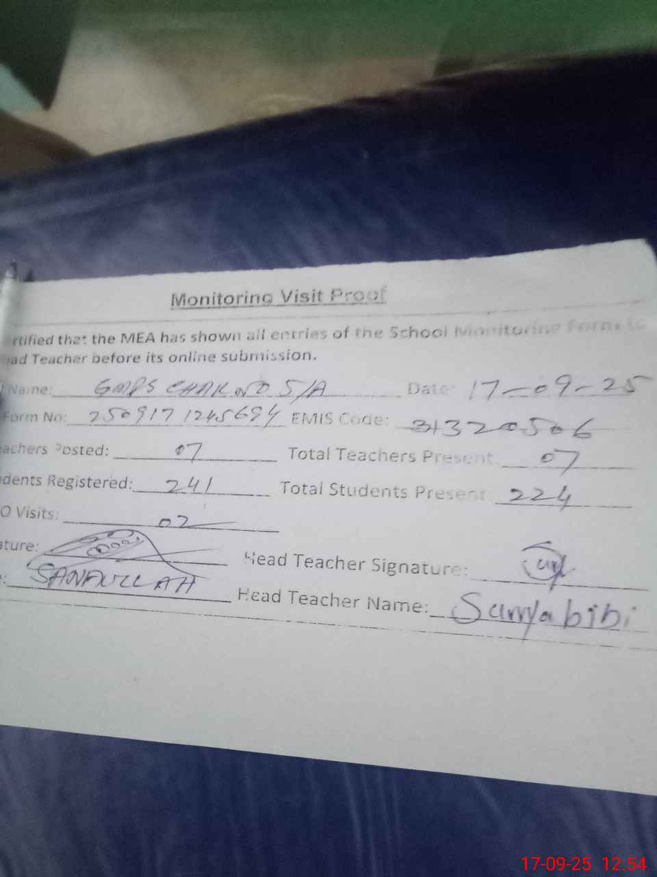 | EMIS Code: 31320506 | Name of School: GMPS CHAK NO.5/A | |||