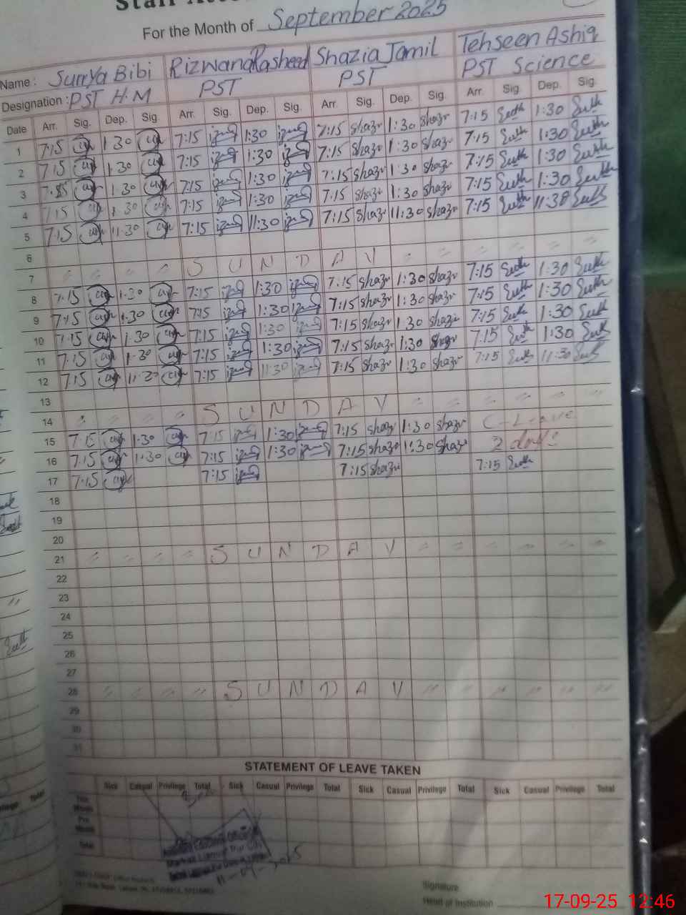 | Monitoring Date: 17-09-2025 | Start Time: 17-09-2025 12:30 PM | End Time: 17-09-2025 12:54 PM | Name of MEA: Mu**** Sa**** Ul**** Sa**** | |