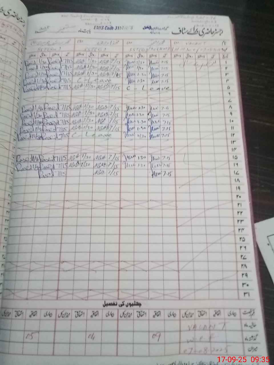 | 31**** | Ir**** Ba**** | 2 | 2 | 0 | 0 | 0 | 0 | 0 | 0 | 0 | 0 | 0 | Absent (Un-Authorized) |