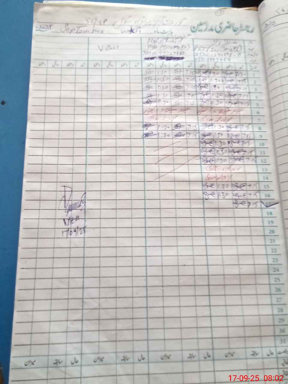 | Name: Uz**** Na**** Designation: (School Headmaster's/Headmistress's) PST Phone/Cell Number: 03**** |