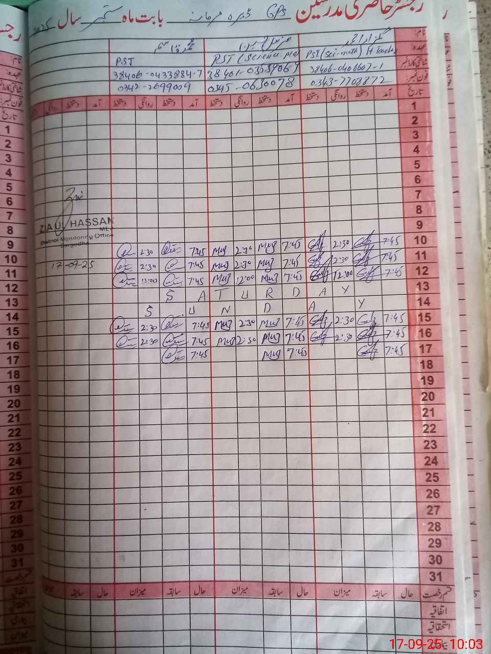| Name: GU**** AH**** Designation: (School Headmaster's/Headmistress's) PST Phone/Cell Number: 03**** |