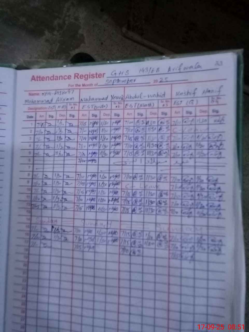| Name: KA**** TA**** Designation: (School Headmaster's/Headmistress's) SST (SCI) Phone/Cell Number: 03**** |