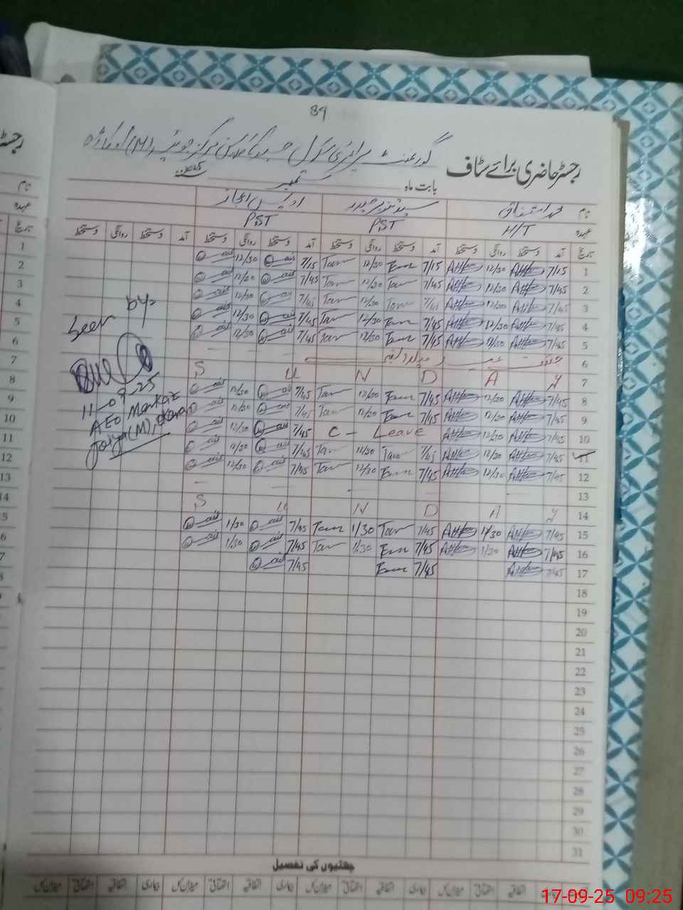 | CNIC | Full Name | Designation | R/C | Absence During Last Calender Month |