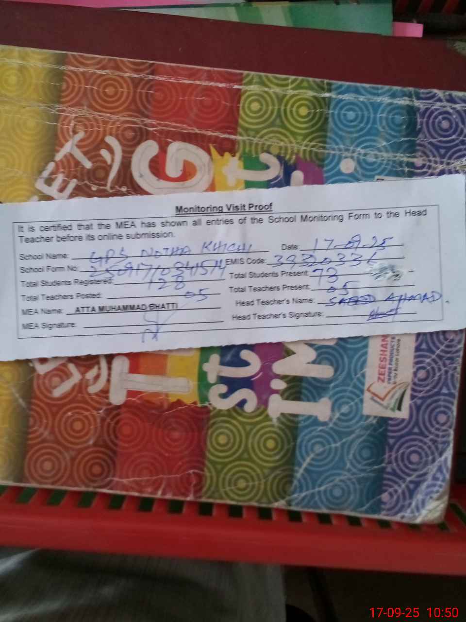 | EMIS Code: 39320336 | Name of School: GPS NOTHA KHICHI | |||