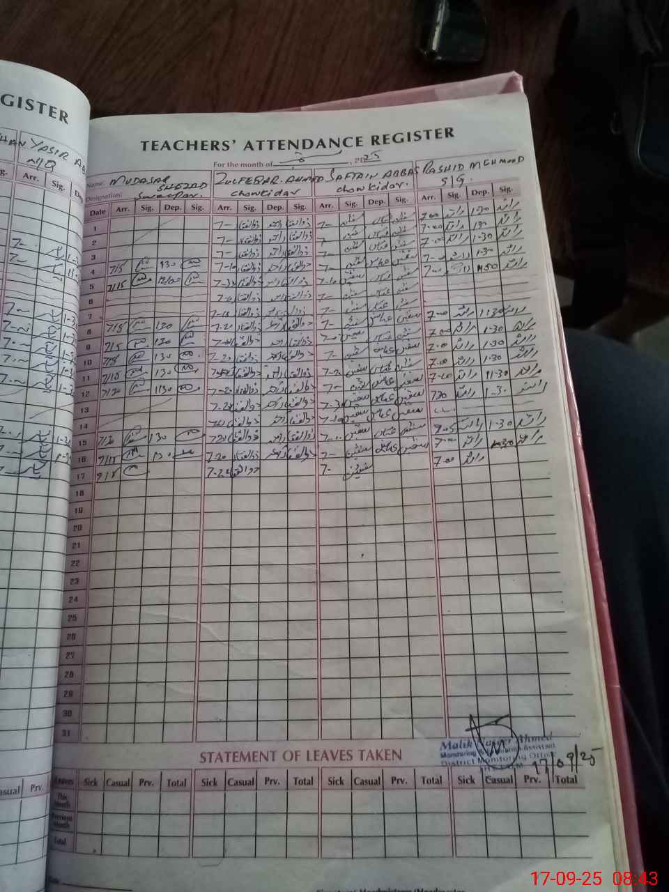 | 37**** | Ta**** An**** | 4 | 2 | 0 | 0 | 0 | 0 | 0 | 0 | 0 | 0 | 0 | Absent (Un-Authorized) |