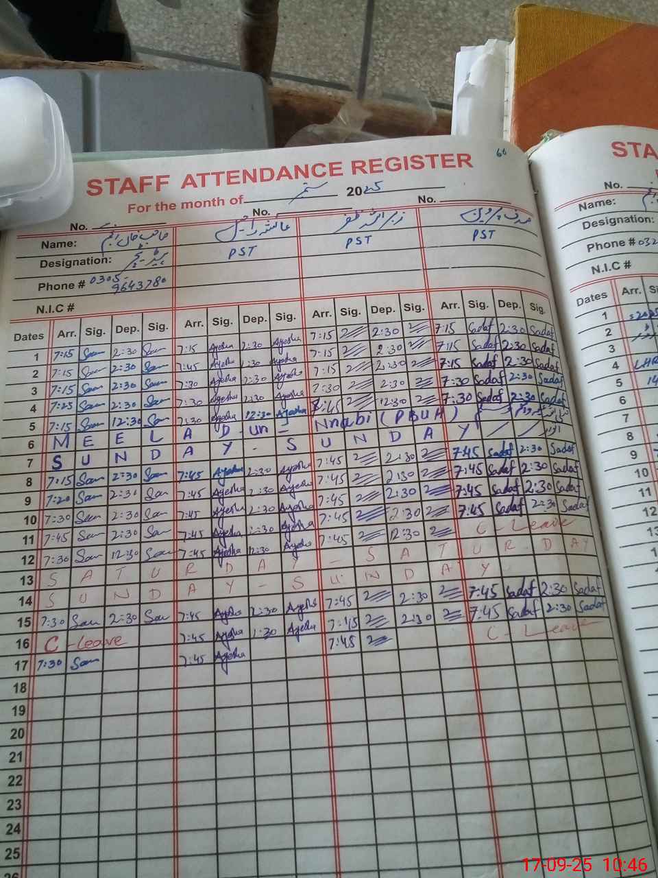 | Name: SA**** KH**** AN**** Designation: (School Headmaster's/Headmistress's) PST Phone/Cell Number: 03**** |