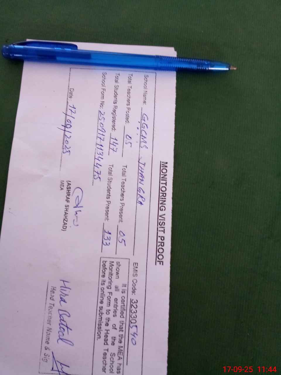 | EMIS Code: 32330540 | Name of School: GGCMS JHANGRA | |||
