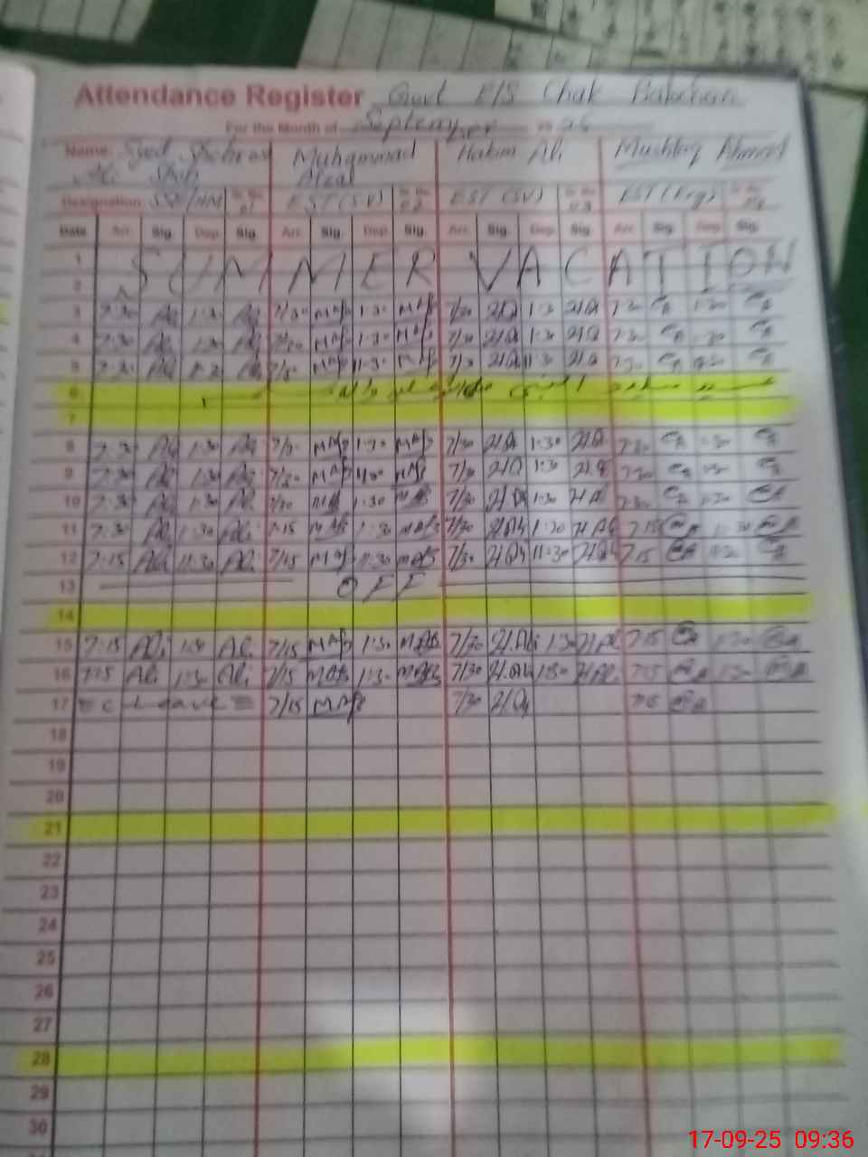 | CNIC | Full Name | Designation | R/C | Absence During Last Calender Month |