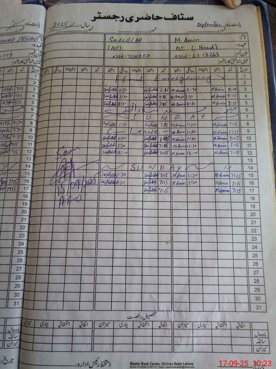 | CNIC | Full Name | Designation | R/C | Absence During Last Calender Month |