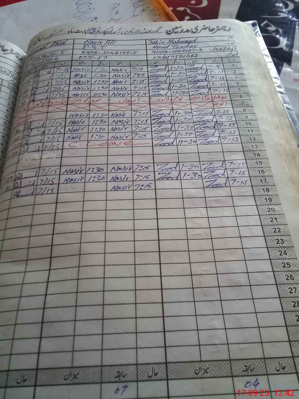 | CNIC | Full Name | Designation | R/C | Absence During Last Calender Month |