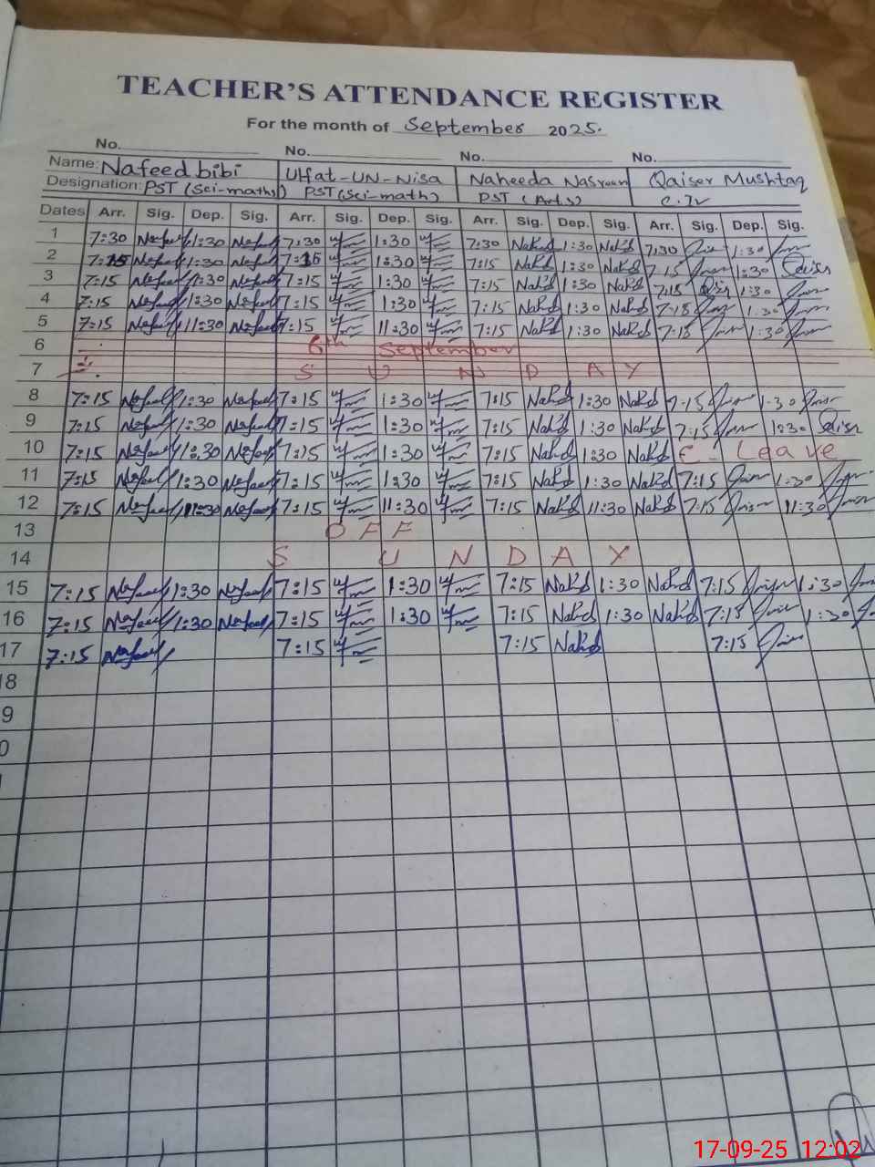 | Monitoring Date: 17-09-2025 | Start Time: 17-09-2025 11:58 AM | End Time: 17-09-2025 12:14 PM | Name of MEA: Za**** Me**** | |