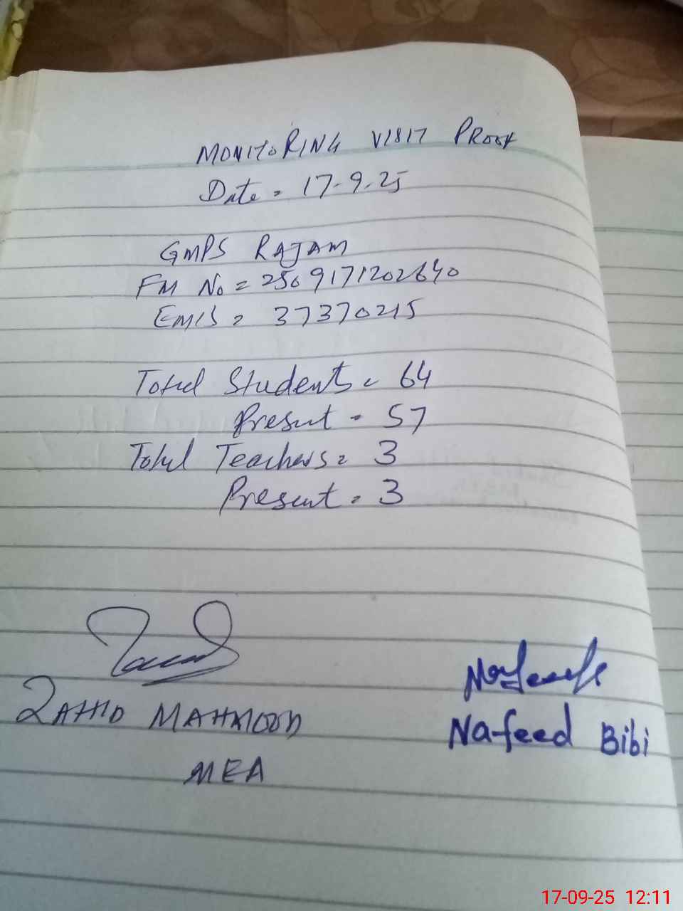 | EMIS Code: 37370215 | Name of School: GMPS RAJAM | |||