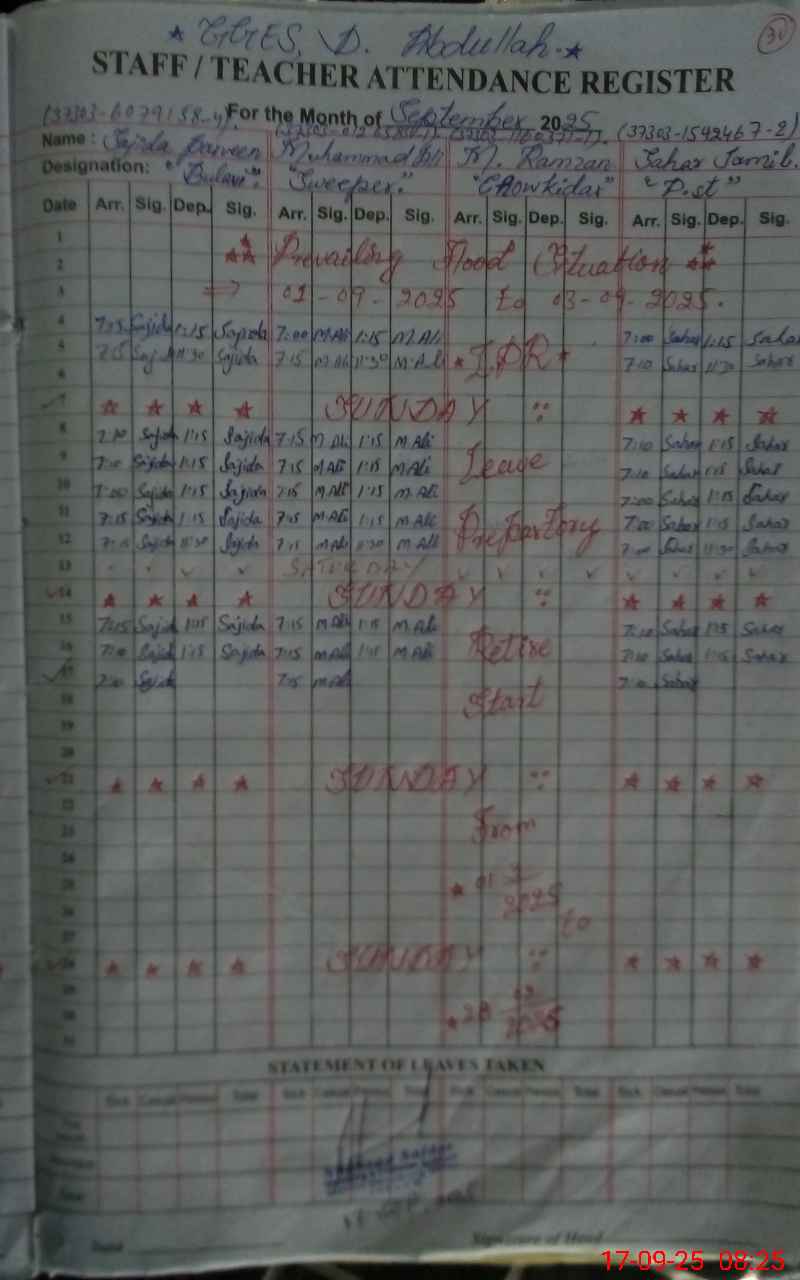 | Attendance Register | Head Teacher | MEA with School | Visit Proof |
