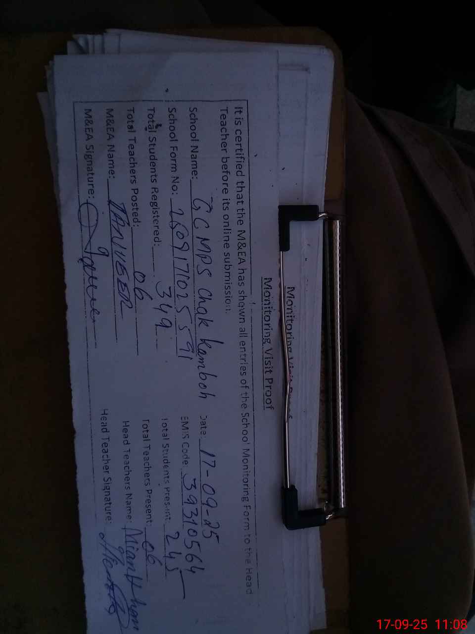 | EMIS Code: 39310564 | Name of School: GCMPS CHAK KAMBOH | |||