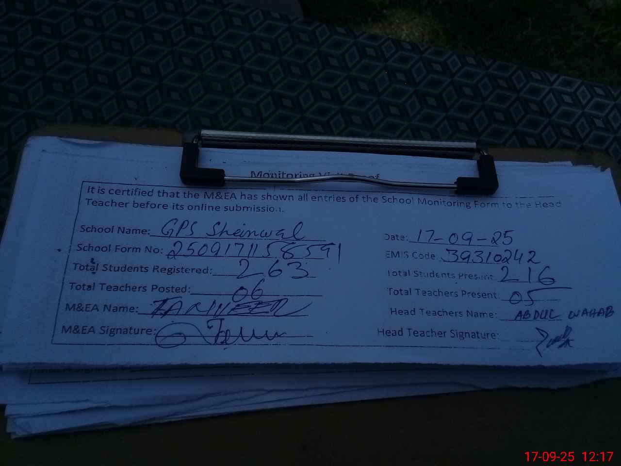 | EMIS Code: 39310242 | Name of School: GPS SHEIN WALA | |||