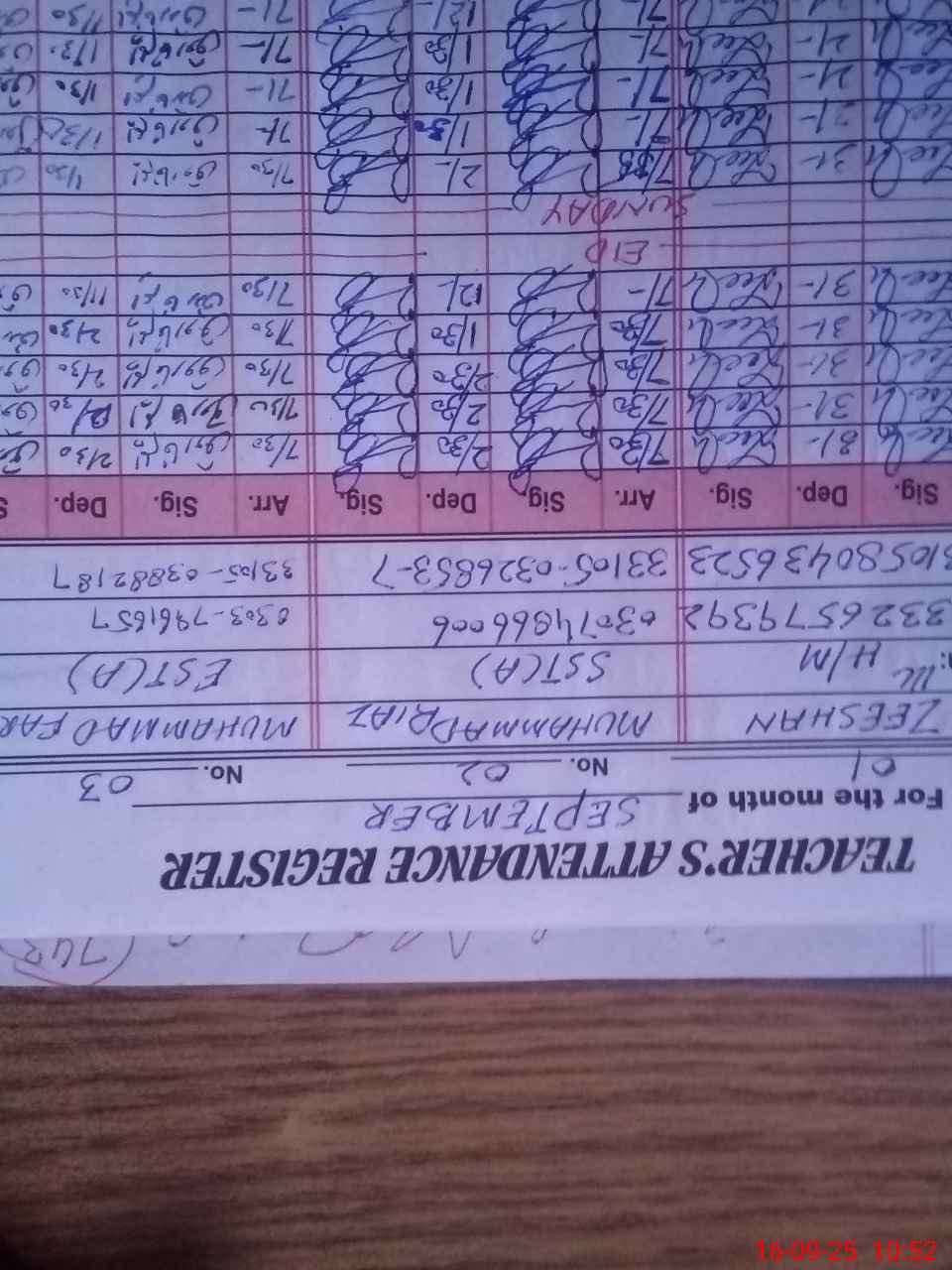 | Name: ZE**** Designation: (School Headmaster's/Headmistress's) SST (I T) Phone/Cell Number: 03**** |