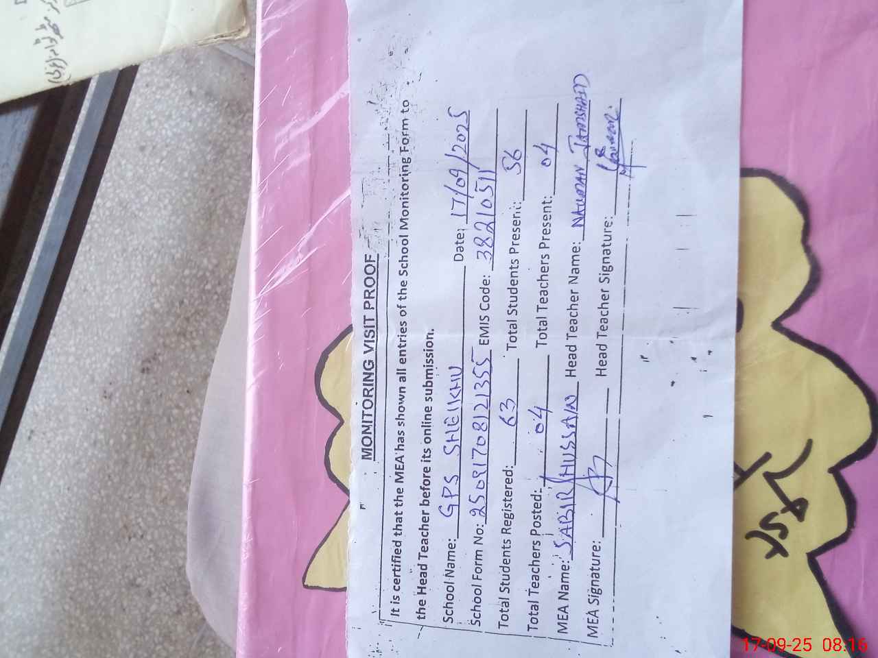 | EMIS Code: 38210511 | Name of School: GPS SHAIKHU | |||