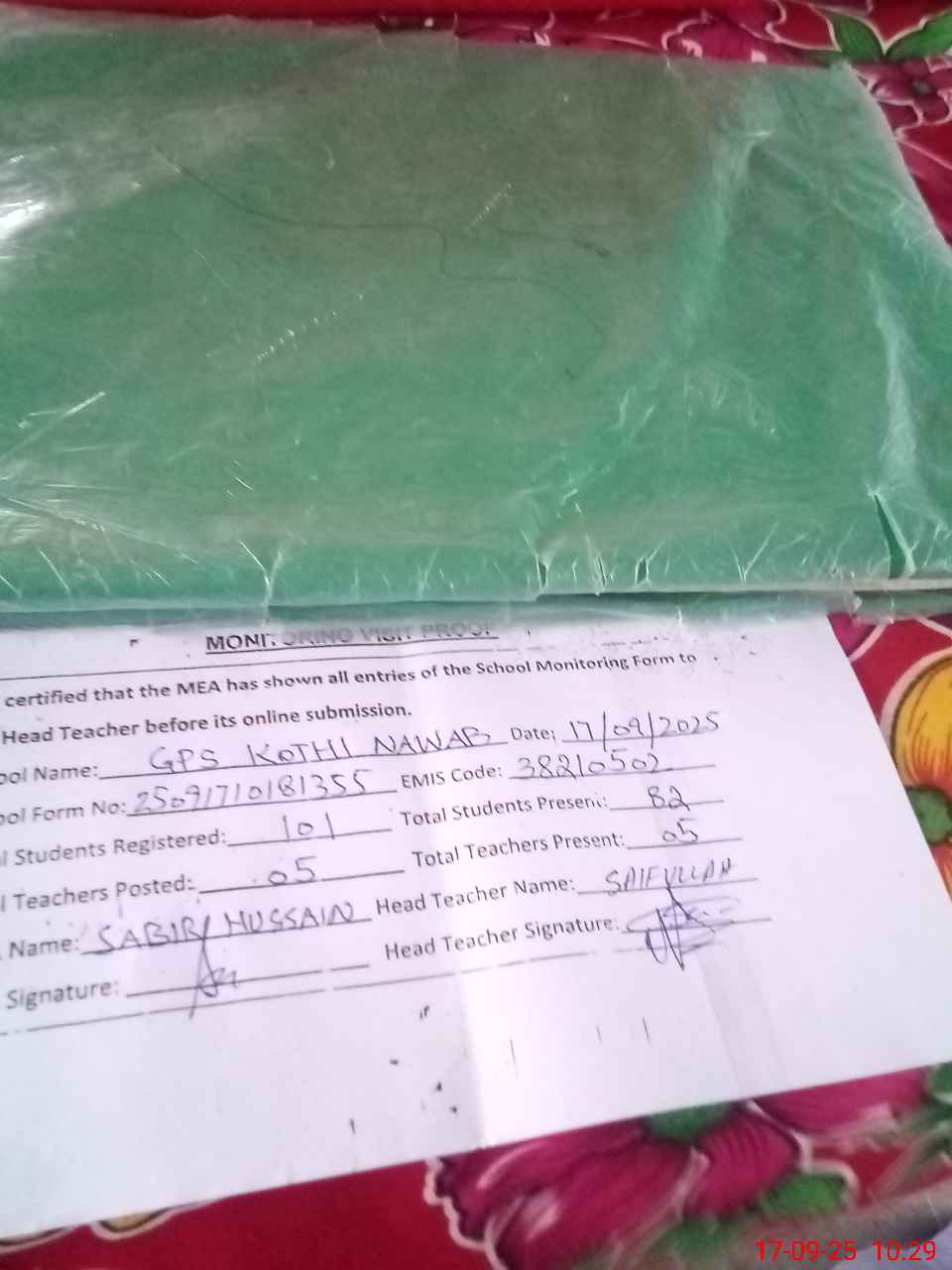 | EMIS Code: 38210502 | Name of School: GPS KOTHI NAWAB | |||