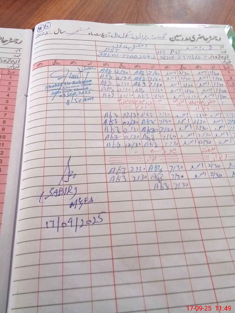 | Name: Mo**** As**** Designation: (School Headmaster's/Headmistress's) PST Phone/Cell Number: 03**** |