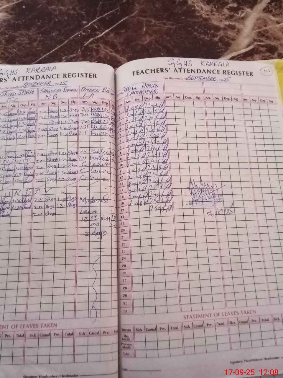| CNIC | Full Name | Designation | R/C | Absence During Last Calender Month |