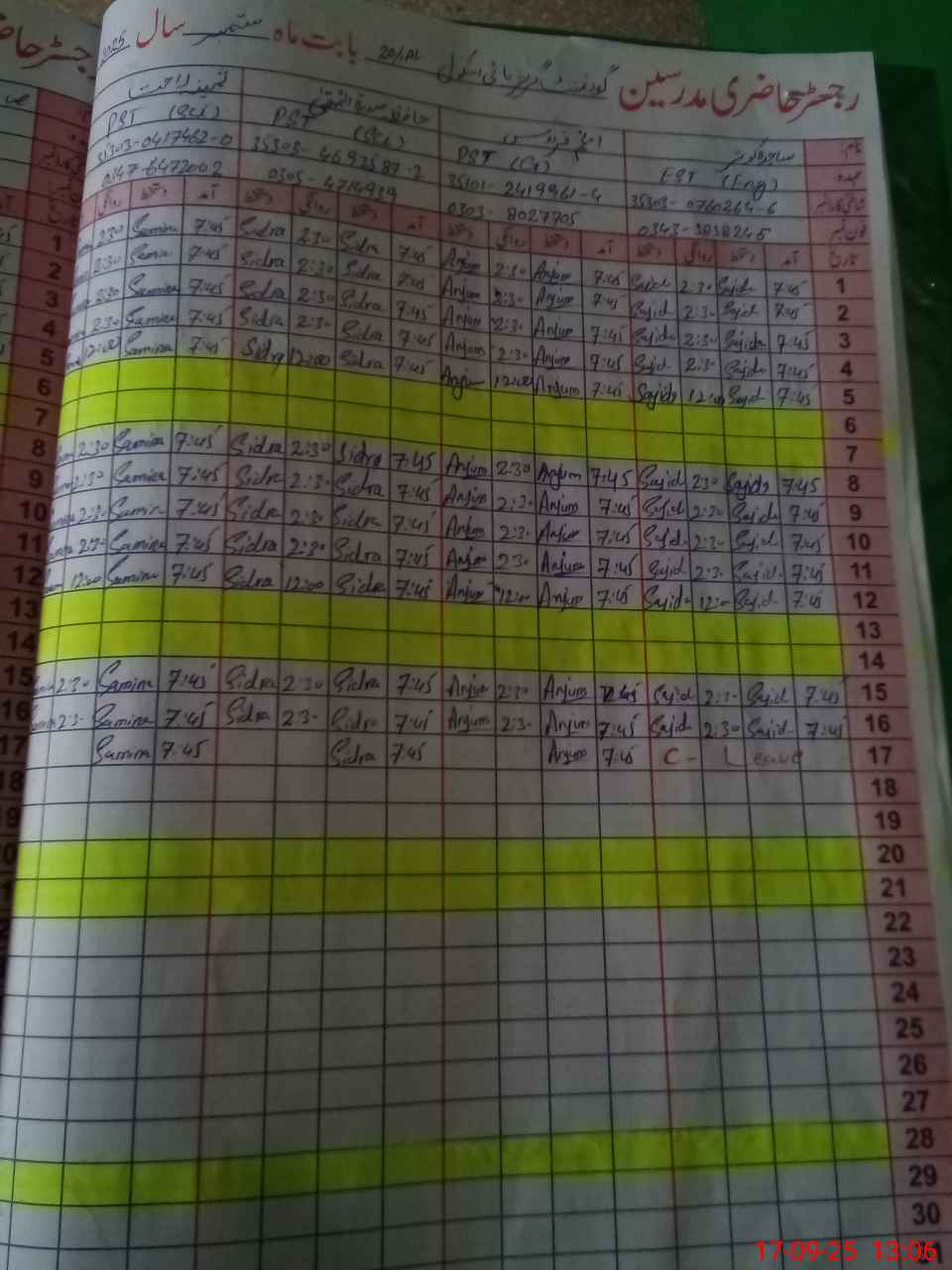 | Name: KH**** BA**** Designation: (School Headmaster's/Headmistress's) SST Arts Phone/Cell Number: 03**** |