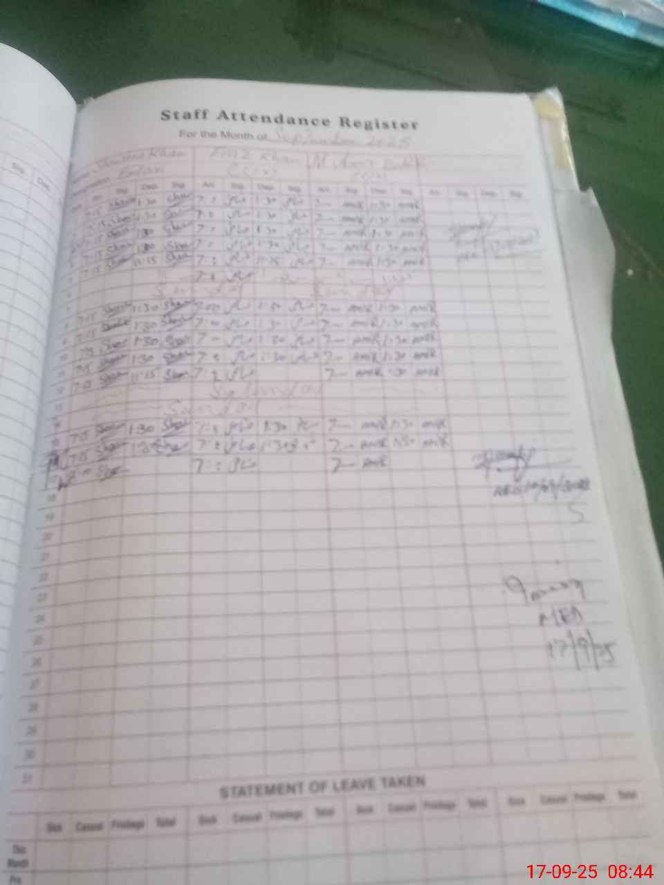 | Monitoring Date: 17-09-2025 | Start Time: 17-09-2025 08:07 AM | End Time: 17-09-2025 08:53 AM | Name of MEA: Ri**** Ah**** | |