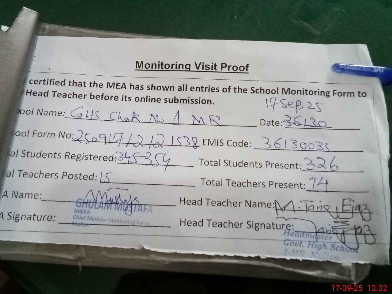 | EMIS Code: 36130035 | Name of School: GHS CHAK NO. 1/MR P/O KHAS MULTAN | |||