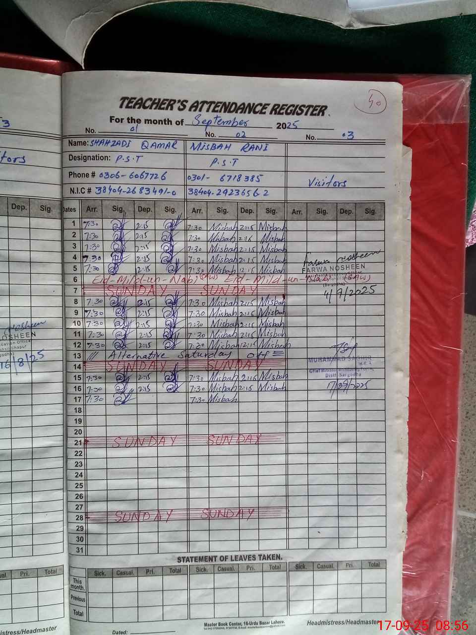 | Name: SH**** QA**** Designation: (School Headmaster's/Headmistress's) PST Phone/Cell Number: 03**** |