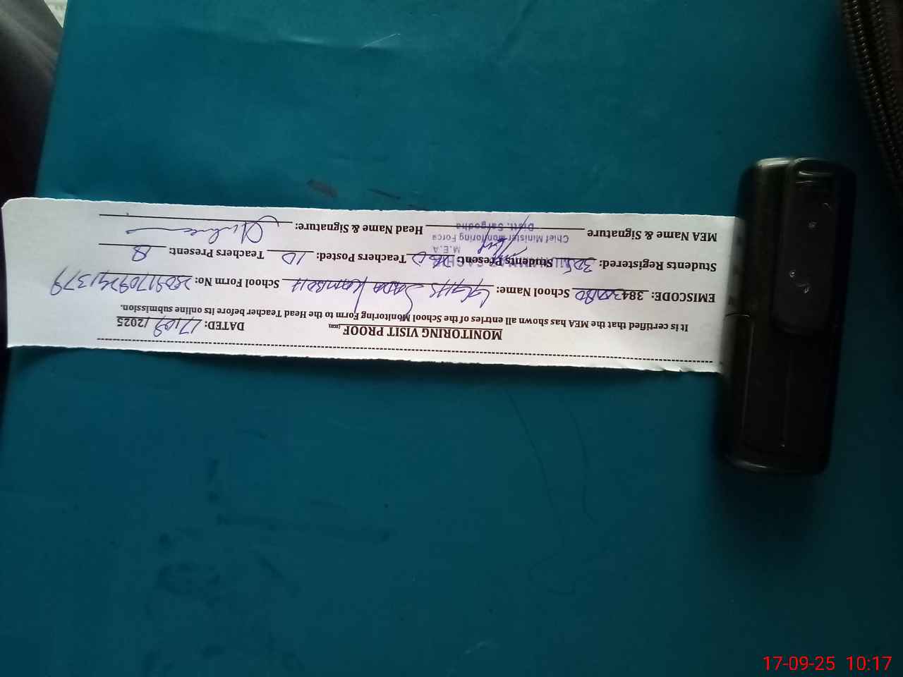 | Monitoring Date: 17-09-2025 | Start Time: 17-09-2025 09:24 AM | End Time: 17-09-2025 10:18 AM | Name of MEA: MU**** SA**** | |