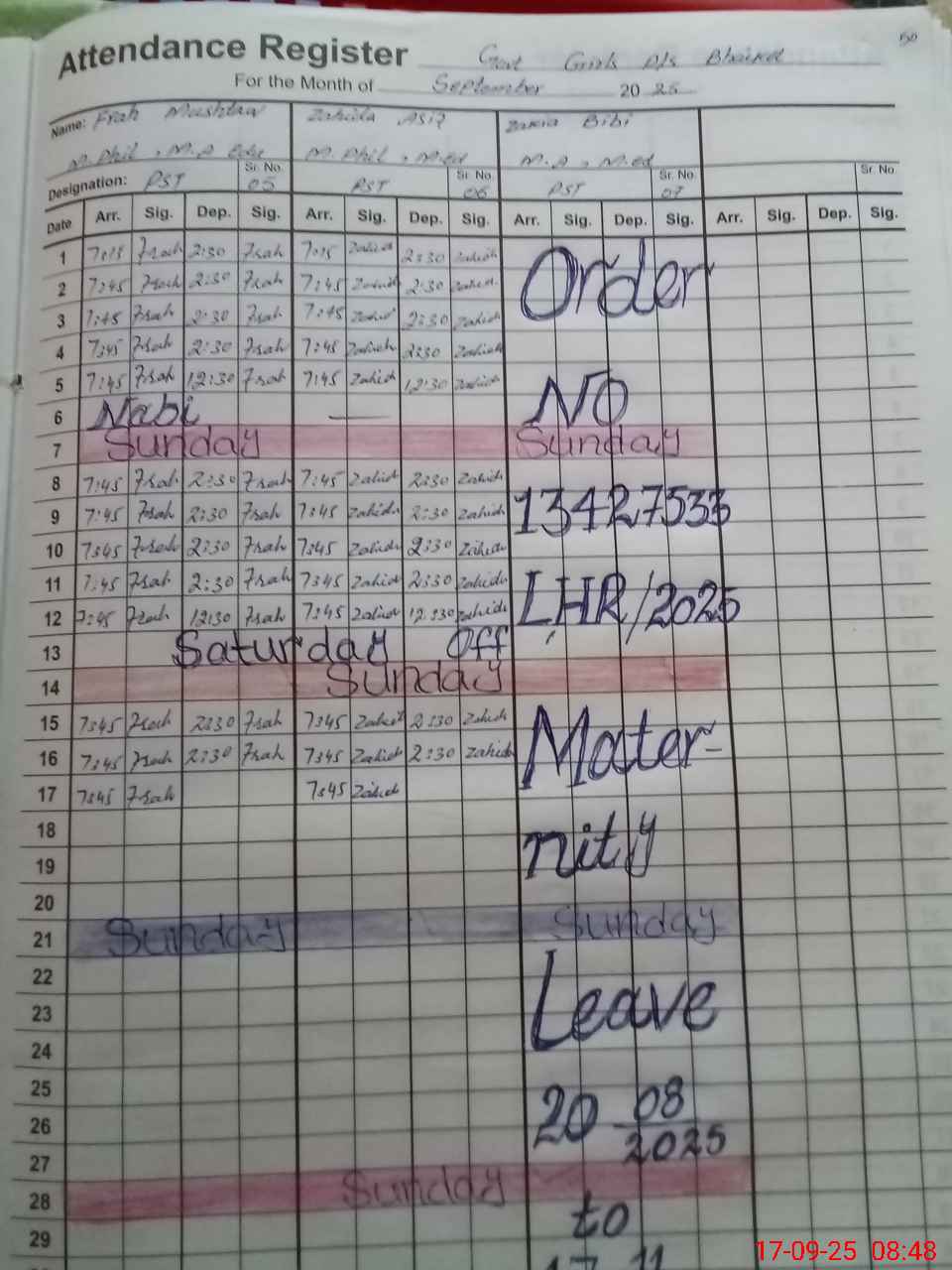 | 36**** | Za**** Bi**** | PST | Regular | 12 | 0 | 0 | 12 | 0 | 0 | 0 | 0 | 0 | Maternity |